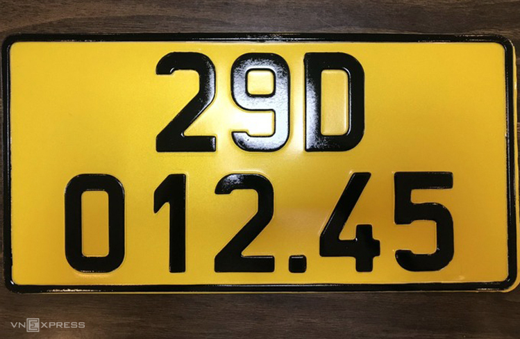Mẫu biển màu vàng cho xe đăng ký kinh doanh từ ngày 1/8. Ảnh: Cục CSGT cung cấp.