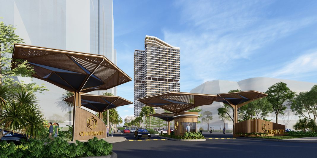 Cổng chào Charm Diamond được thiết kế vừa sang trọng, đẳng cấp với các đường nét tinh tế như tại các khu nghỉ dưỡng – khách sạn 5 sao.