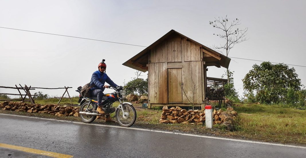 Nghệ sĩ nhiếp ảnh Võ Văn Phi Long bên ngôi nhà lán của mình ở bản Căn Tỷ 2, xã Ma Quai, huyện Sìn Hồ, tỉnh Lai Châu