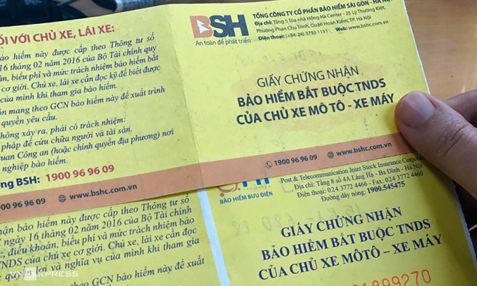Bảo hiểm xe máy bắt buộc – loai giấy tờ người tham gia giao thông phải có. Ảnh: Anh Tú