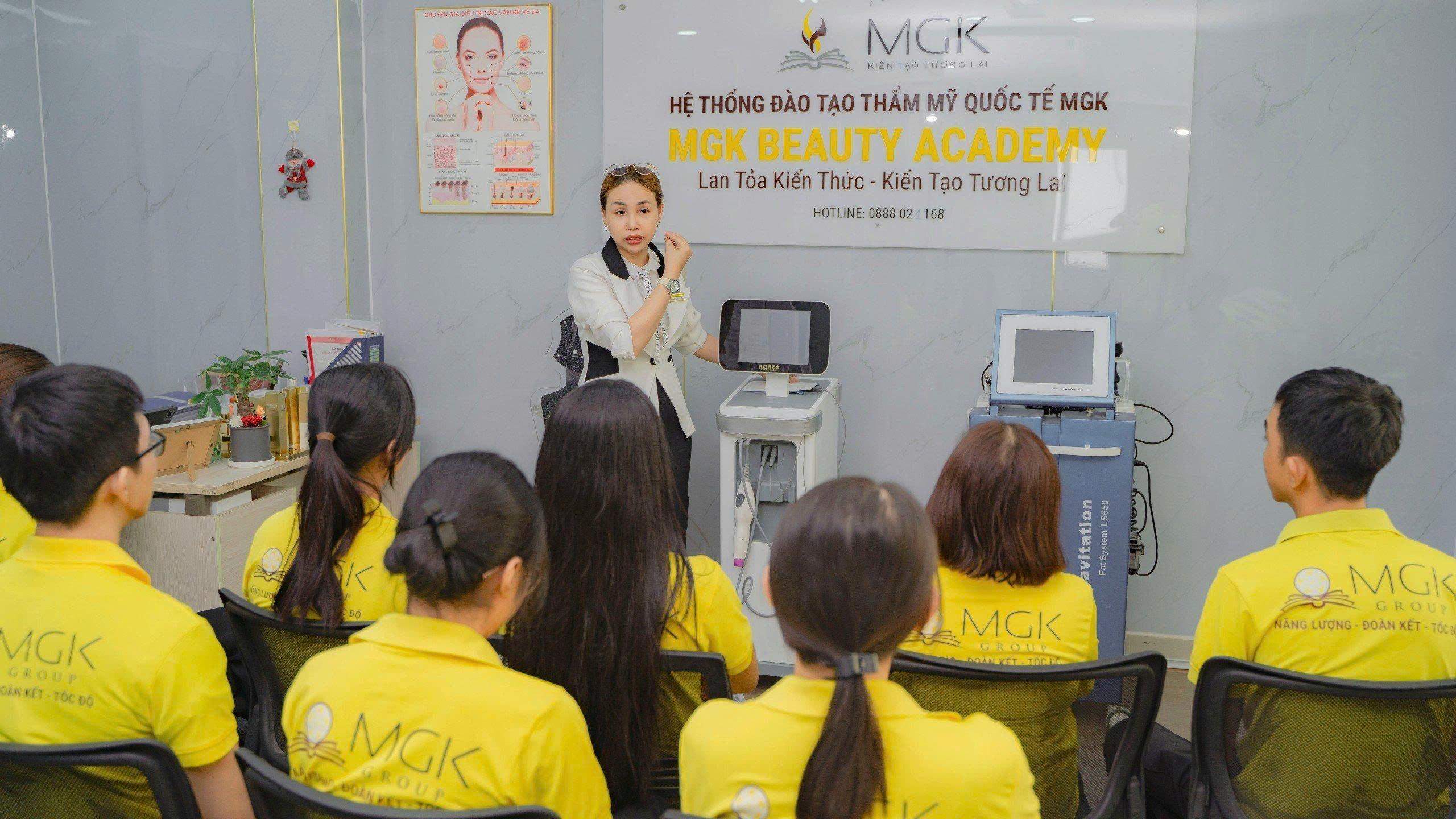 Đặc biệt, MGK không chỉ đào tạo kỹ thuật tay nghề như: chăm sóc da, trị liệu da chuyên sâu, thẩm mỹ, công nghệ trẻ hóa… mà còn đào tạo tư duy làm nghề – kỹ năng kinh doanh – chăm sóc khách hàng.