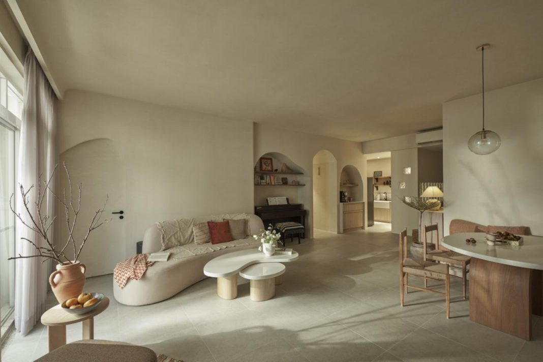 Ngay khi nhận căn hộ, chủ nhà – những người đã vào tuổi trung niên nhưng vẫn yêu thích di chuyển và du lịch đây đó – đã đặt ra cho nhà thiết kế một bài toán nhỏ. Họ mong muốn nơi trở về từ các chuyến đi của mình phải đơn giản, mộc mạc, phóng khoáng, nhưng tinh tế và chứa đựng sự giao thoa văn hóa trong không gian sống. Với sở thích sưu tầm, tìm hiểu những đặc trưng văn hóa, ẩm thực, nghệ thuật của nhiều nước từ Á qua Âu, rồi Trung Đông, đến cả châu Mỹ… chủ nhà và nhóm thiết kế đã thống nhất chọn phong cách Mediterranean – Địa Trung Hải. Không chỉ là một phong cách, tính phóng khoáng, thư giãn với gió và nắng xanh tươi ở vùng biển này sẽ giúp chủ nhà sau mỗi chuyến đi được về với góc sống của riêng mình thật phóng khoáng, thư giãn và bình yên.